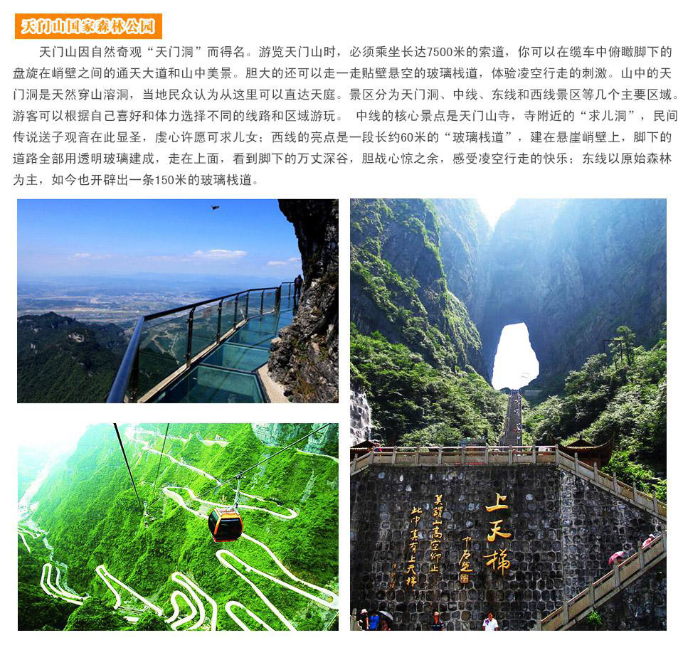 天門四大景區(qū):天門洞開景區(qū)、天界佛國景區(qū)、覓仙奇境景區(qū)、碧野瑤臺景區(qū)