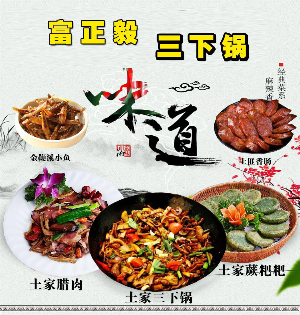 張家界三下鍋,又名土家三下鍋。相傳明代嘉靖年間,朝廷征調湘鄂西土司兵上前線抗倭,恰好趕上年關,為不誤軍機,土司王下令提前—天過年,于是臘肉、豆腐、蘿卜一鍋煮,叫吃“合菜”,以后演變成“三下鍋”。如今張家界的三下鍋不再是臘肉、豆腐、蘿卜一鍋煮,多為肥腸、豬肚、牛肚、羊肚、豬蹄或豬頭肉等選其中二、三樣或多樣經過本地的土廚師特殊加工成一鍋煮。三下鍋的吃法也分干鍋與湯鍋之分,干鍋無湯,麻辣味重,不能吃辣的人最好別吃為好。此菜雖好吃,但在張家界的酒店里面一般是見不到這道菜的,只有在當地人出入的一些小餐館里才有吃的。